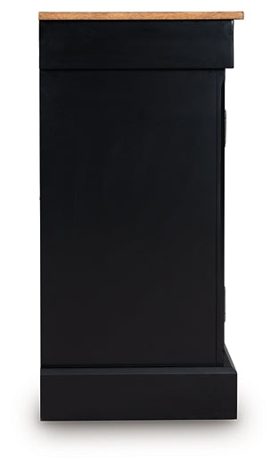 Details | Made with hardwood solids, mango wood veneer and MDF substrate, Top with butcher block veneer pattern in deep brown wood tone finish, Base with warm satin black finish, Hardware with dark bronze-tone finish, 3 smooth-gliding drawers with felt lining and heavy-duty ball-bearing side glides, 3 cabinets, each with 2 adjustable shelves | |